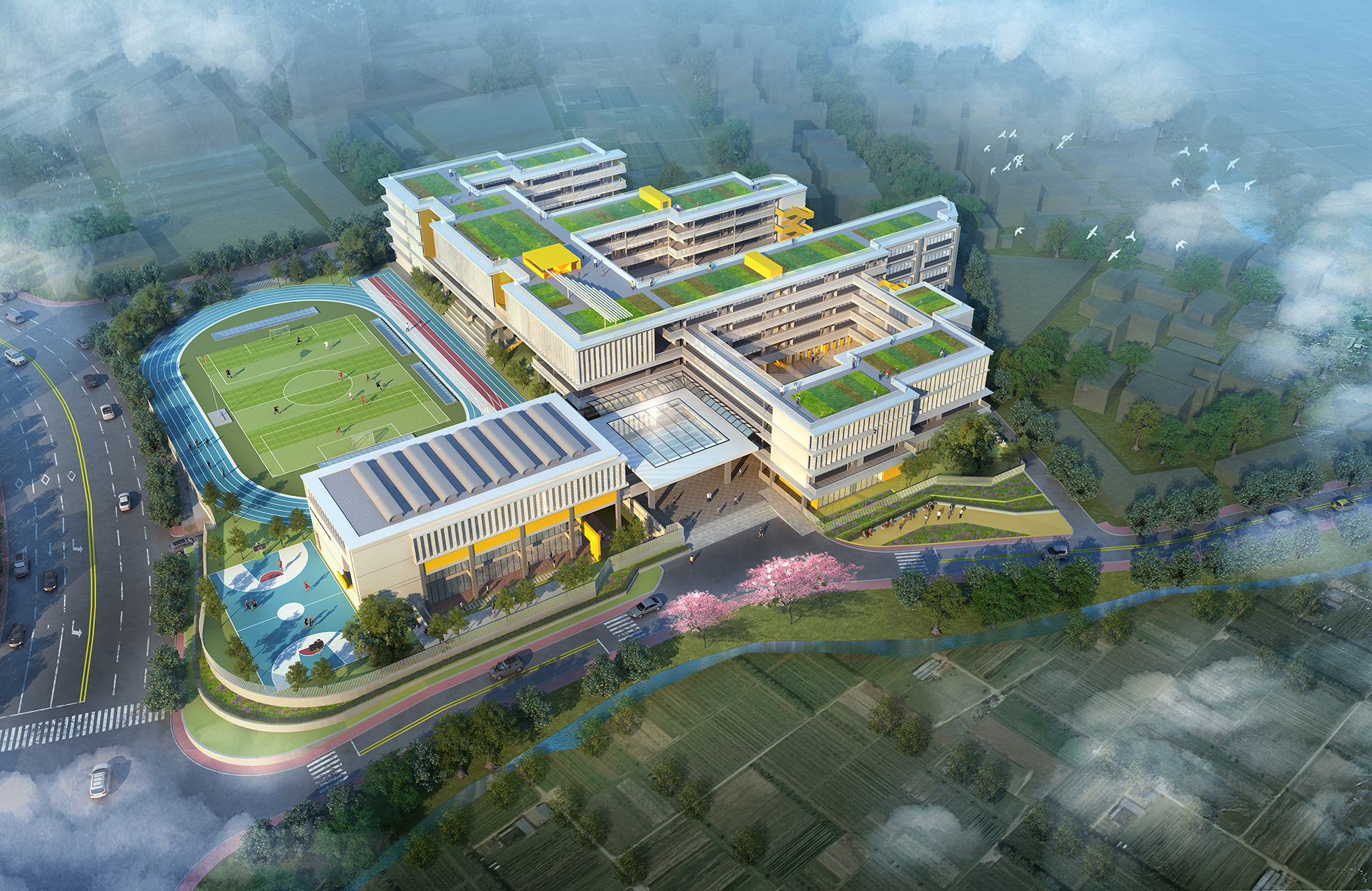 用地面积:32869 ㎡,建筑面积:31970㎡,容积率:0.74,48班学校