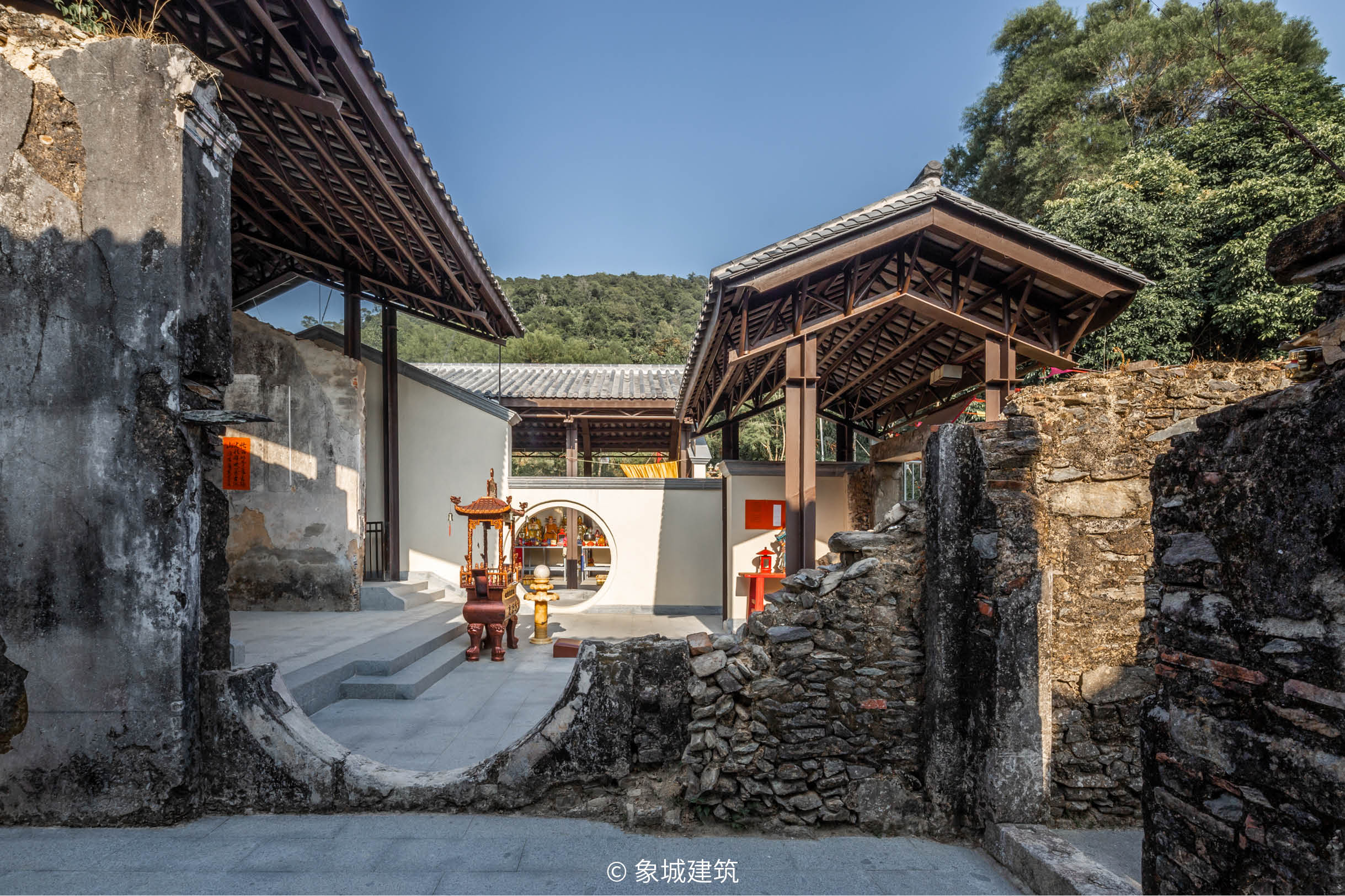 南粤古驿道系列项目是对广东省境内现存的古代交通体系与沿途历史遗存的挖掘和再利用。本项目所处潮惠下路段、岐澳段分别是古代广州通向粤东沿海、珠江口西岸澳门等地的通道。项目内容是对通道上的古代遗存点进行修复和再利用设计,主要涉及的遗存类型包括驿站、关口、茶亭、碑亭、庙宇及石刻等。